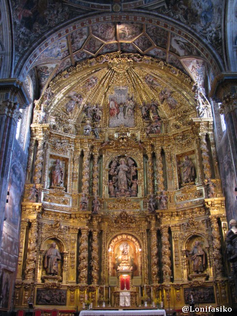 Tras la historieta de turno, volvamos a la plaza, donde es imposible no girar la cabeza y encontrarse de bruces con el monumento histórico quizás más importante de Labastida, la Iglesia Parroquial de Nuestra Señora de la Asunción. Por fuera ya llama la atención, sobre todo por sus dimensiones inesperadas, pero es en el interior donde esta iglesia alberga sus joyas, con un retablo mayor de estilo barroco impresionante, y una llamativa bóveda, llena de pinturas celestiales.