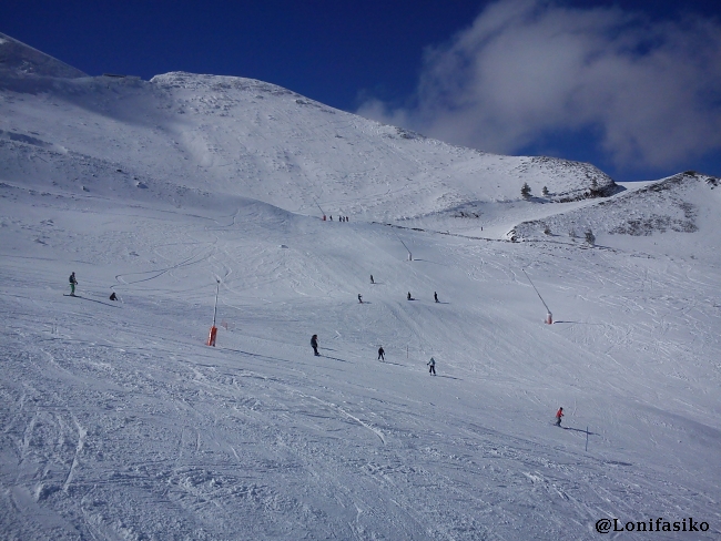 La pista puede parecer algo estrecha en su comienzo, con una fuerte pendiente inicial en la que se forman divertidas ‘bañeras’, pero en seguida la pista se convierte en una pista tranquila y larga que desciende con suavidad hasta la cota 1800 de Colocobia.