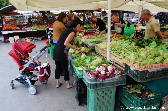 Go local! Y así lo hacemos, rápidamente y sin despeinarnos: hay que comprar unas cerezas que se le antojan a Izaro, Laura merodea los puestos de ropa para analizar la moda eslovena, y Miguel opta por comer un burek relleno de carne comprado en una panadería cercana. Cada loco con su tema, ¡pura vida (eslovena)!