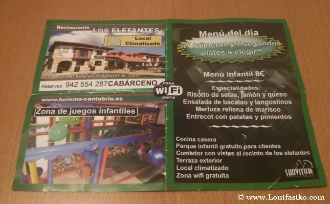 La baza que juegan muy bien algunos de los restaurantes del pueblo es la de entregarte un flyer del restaurante en alguna de las dos entradas del Parque de Cabárceno. Es habitual ver a personal de los restaurantes plantados 100-200 metros antes de la propia taquilla donde tienes que parar con el coche y pagar los 25 € que vale la entrada de adulto a Cabárceno.