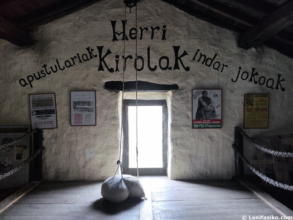 Este conocido harrijasotzaile (levantador de piedras en euskera) y gran embajador de la cultura vasca ha acondicionado -con mucho tesón e ilusión- un antiguo caserío donde recoge y pone en valor, de forma humilde y muy personal, el origen y la historia de los herri-kirolak (deportes rurales vascos en euskera).